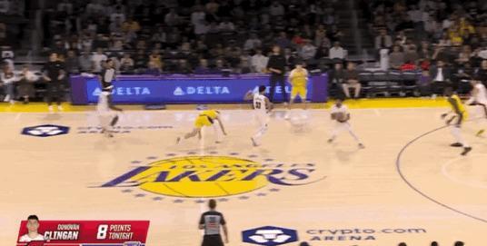 格兰特成功上分,阿夫迪亚滑翔上篮,韦斯利不断地冲击篮筐进行反击,而湖人以38-37分暂时领先。